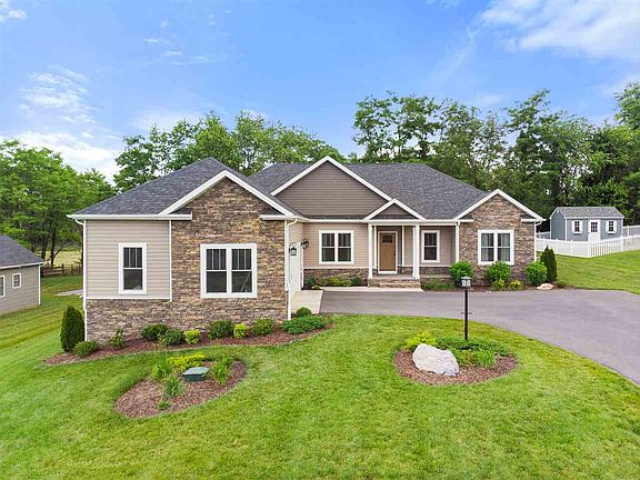 This is the impeccable one story home that you've been looking for! From the stacked stone foundation and accented dormers to the worry-free exterior this home has great curb appeal. The open floor plan has been thoughtfully designed so that the kitchen, large dining area and great room are open and welcoming. Accentuated by a gorgeous fireplace, the great room looks out over a large private covered deck.There is a cozy den as well as a small home office.The master bedroom and large master bath offers two sinks, oversize shower,walk in closet & gives the owner privacy on one side of the home. Two additional bedrooms share a large full bath on the other side. Upgraded appliances, granite counter tops and hardwoods except in guest bedrooms.