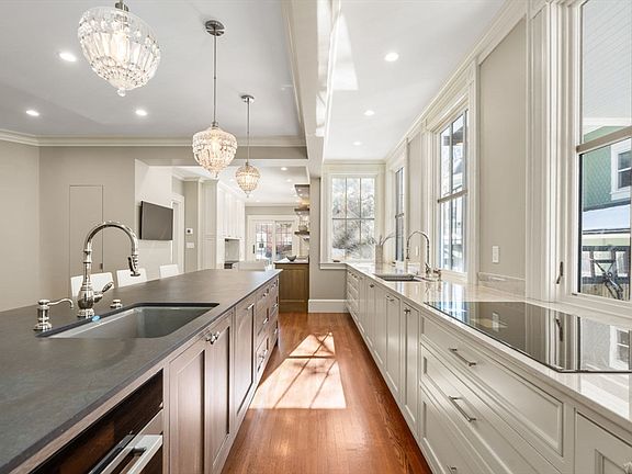 Significant price change. Stately and grand meet modern luxury and comfort. The impressive home has been meticulously renovated to maintain timeless charm while offering contemporary finishes and amenities. This home's heart features a state-of-the-art designer, sun-drenched kitchen leading out to the oversized deck, perfect to relax and entertain. This home is located in the desirable and prestigious Longwood neighborhood in North Brookline. There are 4 finished levels, including a just-completed lower level, perfect for an au pair or in-law suite option. The first level has a grand foyer that leads to an impressive living room and an elegant formal dining room. Multiple French sliders connect to the expansive outdoor space. Offers laundry on 3 levels. Large 2-car garage. Grade school yards away. Minutes to Longwood Medical, shopping, and T. 80, walk score, 86 Transit score. Zoned as a multi-family. Private rental possibilities are in place.