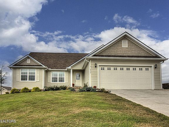 Care in every detail to make this home live large. Over 1.3 acres the outdoor living space with the large storage shed hold your lawn and garden needs. You have the best sunset, lake, and mountain views from this easy living home. Tastefully done and well thought out for your every need. Luxury Plank vinyl flooring along with tile and carpet were used on this 2 year old home. Enjoy the large vaulted great room to entertain guest that is open to the back deck, gourmet kitchen with breakfast bar Island, granite counters, Pendant Lighting, smooth cooktop, LG SS appliances, walk in pantry nice dining area with picture window that looks out to the lake. Flex room can be an office or dining Room. Owner Suite with views of the lake and the bath features double sinks Jetted heated tub walk in seated shower and a walk in closet. Other 2 bedrooms both have walk in closets, hall bath with oversized shower and single sink with linen closet. Lots of storage and many closets. The oversized 2 car garage car has an 8' extension. Venture outside to enjoy the views with patio featuring a permanent awning, fire pit area, storage shed that is floored. Professionally landscaping adds to the beauty of this yard. Main level living at its best. Located in the Gated Community of Grande Vista Bay