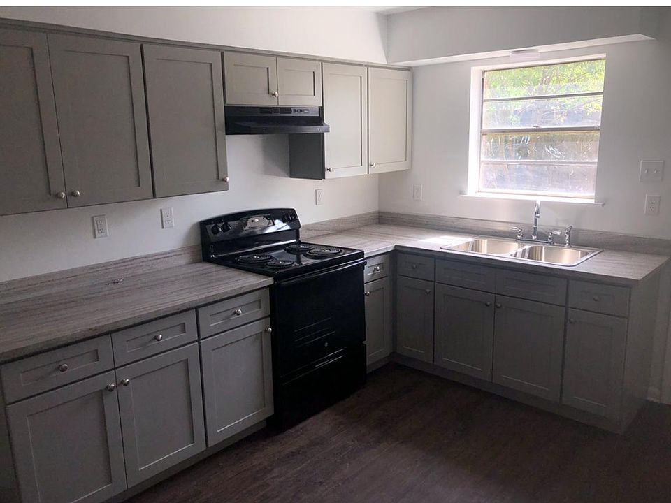 Renovated open plan living room, kitchen and one bath. Kitchen has Quarts counter tops, stove, microwave, refrigerator & washer/ dryer hook ups. One bedroom. Renter pays for electric and water. No smoking allowed. $38 application fee Off street parking for one vehicle.