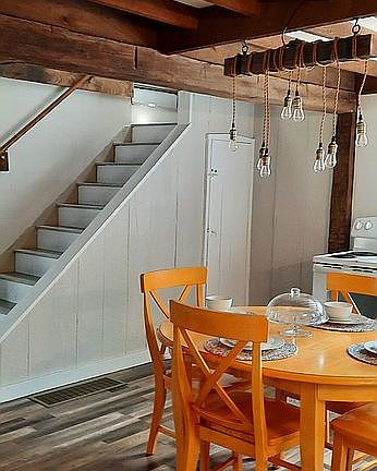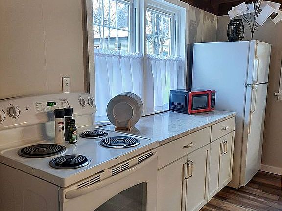 This rare gem has just the right amount of new amenities and old historic charm to create a warm and inviting space. Recently installed white kitchen cabinets and quartz countertops blend with the open beam ceiling. First floor laundry room directly off of patio, which is perfect for morning coffee and bird watching. Original hand hewn beams lead to living room. Step out onto the covered front porch where you will greet friendly neighbors. First floor master suite (11 ? x 16 ?) has vaulted ceiling and completely renovated half bath. New luxury vinyl plank flooring throughout the home. Space for 2 bedrooms upstairs including one 15?x11? area and a second 13?x7 ? area. Storage shed sits amongst plentiful landscaping and nice sized yard. Off-street parking large enough for 2 vehicles. So many good things can be said about Bellville, an idyllic little Midwestern town. Find yourself in the middle of it all! Close proximity to Malabar Farm, Mohican and Interstate 71. Walking distance to B&O Bike Trail and Main Street Bellville. Air conditioning installed May 2021. Appliances and most furnishings are negotiable.