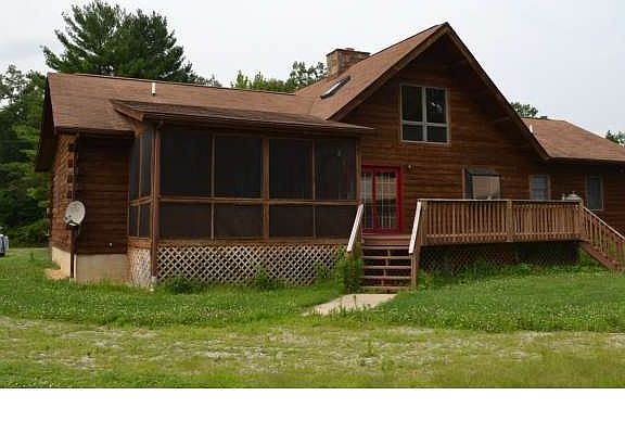 Quick possession possible for this custom-built 3-4Br/2Ba log cabin Cape home on 15 acres. Many recent updates and improvements. Bright and open interiors. Spacious living room with full-length stone fireplace. New wood floors. New eat-in kitchen with granite tops, new cabinetry and new appliances. Main floor master bedroom with full bath. Loft can be used as the 4th bedroom. Rear porch and deck. Full basement with outside entrance. Adjacent barn, recently re-built, can easily accommodate 4 cars and workshop. Improved rear deck. Fenced areas for horses. Future subdivision possible but not guaranteed. In addition to conventional, FHA and VA, this property is eligible for USDA financing with no money down. Seller will also consider lease-purchase. Current tenant plans to move out by 11/30/16. Contact listing agent for showings. Minimum 24-hour notice required.