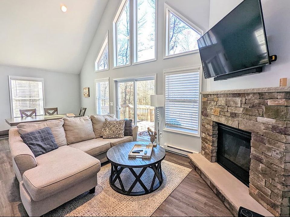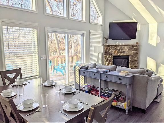 Beautiful modern mountain chalet in the sought after private community of Towamensing Trails. Custom built with upgraded vinyl plank flooring, stainless steel appliances, gas fireplace, outside fire pit and a spacious deck. Attached ATV garage for sporting vehicles or golf cart. Private community lake offers a large beach with swimming area, boat launch and fishing. Other amenities include basketball courts, tennis courts, community pool and clubhouse.