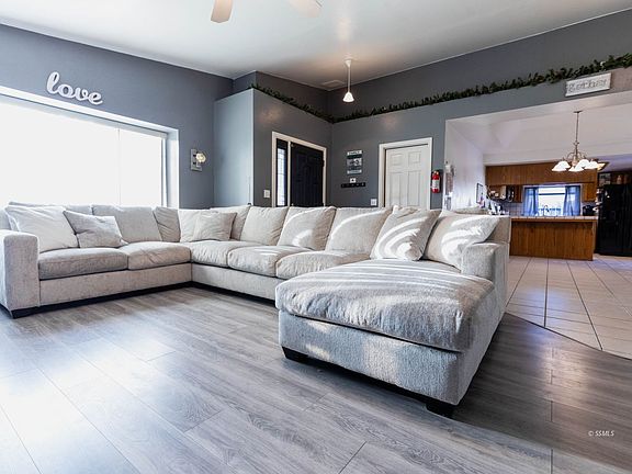 Come see this Eastridge Estate home with vaulted ceilings and open footprint. This three bedroom, two bathroom home with a two car garage will give you 1,353 sqft of space to move about. Large picture window in the living room area bringing in so much natural light. "U" shaped kitchen with plenty of counter-space and breakfast bar seating. Built-in storage located in the dining room. No popcorn ceilings! Ceiling fans in each bedroom and living room area. Spacious covered back patio and storage shed in the backyard. Don't forget the RV or trailer parking! Call today to schedule your appointment and come see your new home.