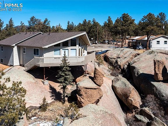 Here is your home built upon the rock! Awesome views of Pikes Peak and Sentinel Point. Wildlife is plentiful and visit daily. The deer, fox and a variety of birds are especially beautiful. The perfect Short Term Rental or Full Time Residence, this Ranch style home has a total of 2,382 sf. There is 2,088 sf upstairs with 3 bedrooms, 2 baths, a gigantic living room with floor to vaulted ceiling windows. Downstairs is the 294 sf bedroom #4/office/TV room. You'll love the privacy on 2 acres at the end of Monarch Dr in the friendly Florissant Heights neighborhood. There is plenty of parking in the 2 car detached garage with an attached 2 car carport. Have an RV? You'll have plenty of space plus RV hook ups. Work from home? No problem with Vero Broadband (aka Peak Internet) LOS microwave system. Recent upgrades include: Roof, Radon system, Bath faucets, Trim, Interior paint, Wainscoat, Deck repair, Exterior Paint, Door hardware, Window shades Don't delay. Stop by and see us today!