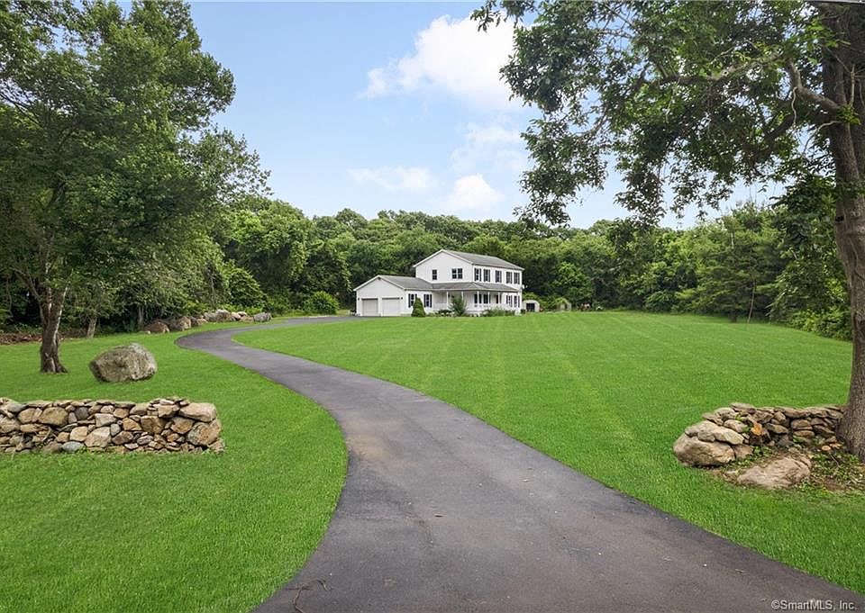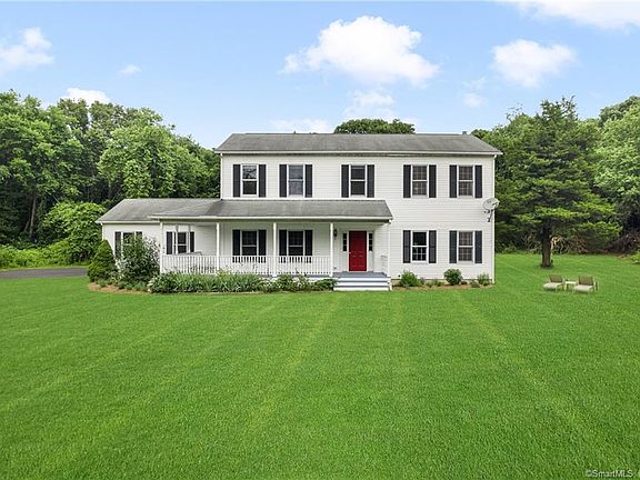 This impressive Colonial beckons you to the Stonington countryside complete with farmhouse style covered porch and rustic stone walls. Enjoy the dog days of summer while you relax on the 33 x 21 wrap around front porch or stay cool inside with central air. A large 7 x 13 foyer welcomes you into a fantastic layout highlighted by a wonderful family room with wood burning fireplace and french doors to the back yard. The kitchen flows to the dining room presenting another set of french doors to the deck. A great space for gathering. Stunning cherry hardwood floors throughout entire first floor. This home offers 4 bedrooms 2 full baths and 1 half bath. The primary bedroom ensuite features an 8 x 10 walk in closet and large bathroom with jacuzzi tub and private toilet. Additional bonus room in lower level. All of this on 2.01 acres of flat level yard. A few minutes to beautiful downtown Westerly and beaches. A short drive to historic Stonington Borough and Mystic.