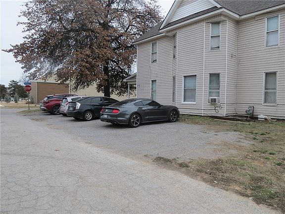 Four 1 BR/1Bath apartments under one roof, 2 upstairs and 2 downstairs. Each apartment has a gas stove and refrigerator, radiant gas heater and window unit air conditioners. Roof was replaced near the end of 2022. The downstairs apartments have newer paint with all units having updates within the last 2 years. Seller has had the gas lines replaced during her ownership. Water lines are PEX and the electric is Romex. Upstairs apartments currently rent for $650/mo. and downstairs units rent for $695/mo. Parking area is on the north side of the building. Cinder block detached garage/outbuilding. ALL UNITS ARE OCCUPIED~