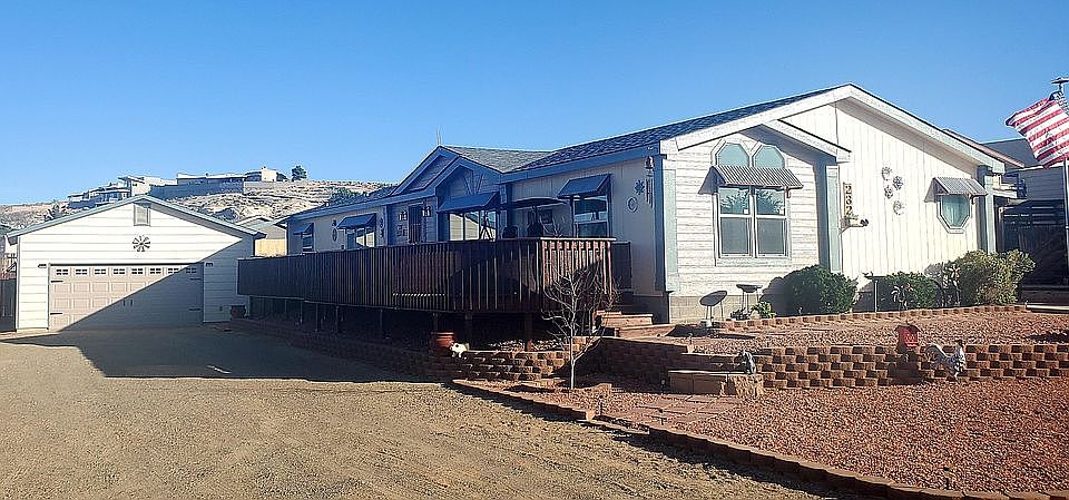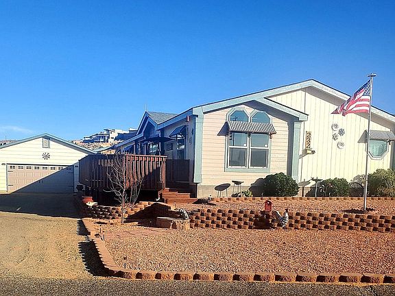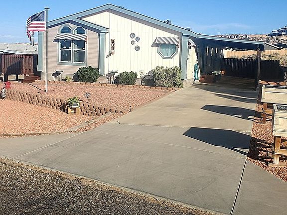 y'all, this home is truly move in ready! Located on two lots, you won't feel fenced in. Sit out on your deck -all 730 sq ft of it, and watch the sunset colors play off the sky and mesas. This 1997 Marlette has so much to offer, 4 bedrooms, a split floor plan with the master on one end- the master bath features a double vanity, garden tub and tiled walk-in shower. The floors are a beautiful laminate, with waterproof flooring at the entrance and in both bathrooms and laundry room, which also has a deep sink and outside access to the covered 12x52 carport. Kitchen has top of the line stainless Kenmore Elite series appliances. granite rock composite counters. Additional features include an oversized two car garage, heated and plumbing- with so much storage area, you might have trouble filling it. A new wood privacy fence in the back, a fire pit area for roasting marshmellows- and a gaming area for lots of family fun! Low maintenance zero scape-This home checks off all the boxes, don't take my word for it- call me for an appointment and see for yourself.