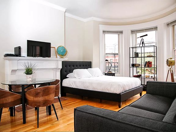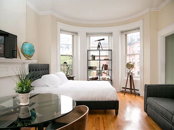Newbury St. Sunny 2nd floor Front Facing. Central Air Conditioning(brand new split system). Washer/dryer in-unit. Walk-in closet & linen closet. 2 room studio - Separate granite/stainless kitchen with breakfast bar. Newly renovated Bathroom. Oversized Bay Windows. Newbury St. views. Amazing natural light. Ornamental Fireplace. In a very well-managed brownstone. Prime location steps to Trader Joe's, CVS, Star Market, Prudential Center, John Hancock, Copley Sq., Green line T & Back Bay Station(Orange line T, Commuter Rail & Amtrak/Acela to NYC), Charles River Esplanade, Public Garden, etc. Available NOW. Initial lease to run until 5/31/26 First & Security. No smoking. No pets.