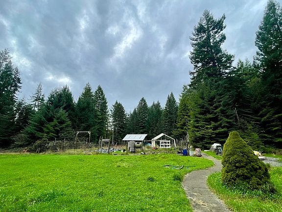 Fieldbrook charm, end of road privacy on over five acres. Custom one bedroom house built in 1990, detached 768 s/f garage and large shop. Big garden area and meadow.