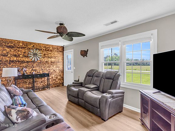 As soon as you walk in, you'll be welcomed into a cozy living room thoughtfully decorated with a love for country living —a perfect reflection of the peaceful, rustic lifestyle this home offers.