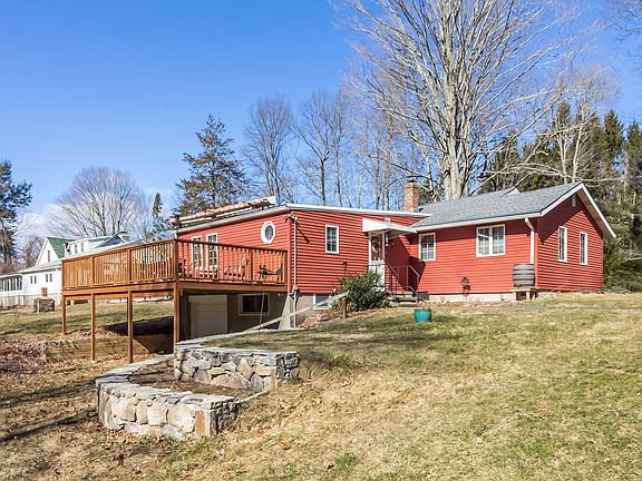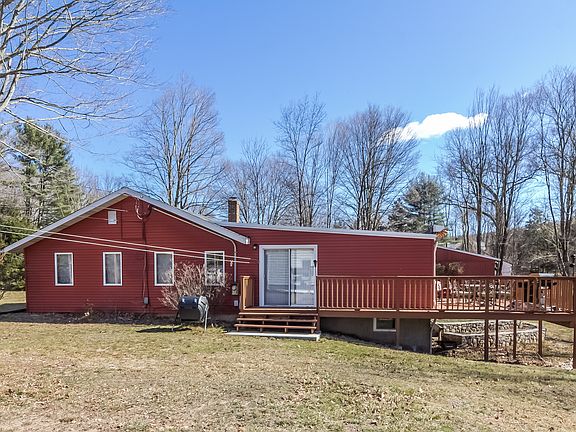Call Pat Blanko 203-206-9194! Updated 3BR Ranch beautifully set on 2.2 level acres with 36x24 DETACHED BARN/GARAGE! Light and bright! Streaming with natural light is the expansive living room with vaulted ceiling and skylights; open floor plan; eat-in kitchen with breakfast nook; formal dining room with slider to 26x12 deck overlooking spacious, private yard w/stone walls! Garage door access under to storage area. New roof! Really pretty house! Call Pat Blanko 203-206-9194!