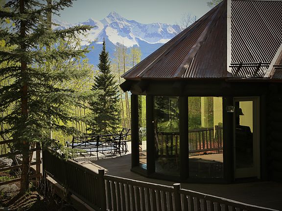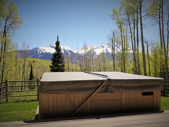 Unparalleled end-of-road private compound with direct hiking access to National Forest and some of the Best Stay-at-Home views in the Ranches . Main House and Guest House are situated on top of a knoll surrounded by Aspen meadows with all-day sunshine and dramatic views of the Wilson/Sunshine mountains . Sun sets on Utah .