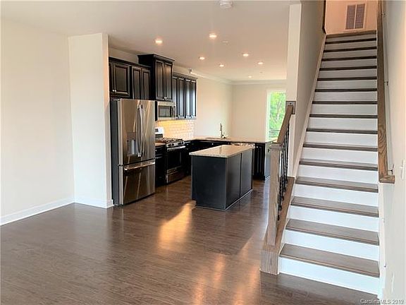Luxurious townhome living near uptown Charlotte. 4 story, 3 BR, 3.5 Bath, 2 car garage and roof top terrace w/ incredible views of the city skyline. Open concept floorplan with modern kitchen, dining area and family room with box bay window adding amazing natural light. The 3rd level offers a lavish owner's suite with double vanities w/granite, frameless shower and walk in closet. This floor also has a laundry closet with a GE Front Load Washer/Dryer and a secondary bedroom with its own private bathroom. The 4th floor offers an open loft and guest suite with full bath and large closet. Watch the sunset over the city from your rooftop terrace. Discover endless possibilities at Optimist Hall -Charlotte's newest dining and entertainment hub that's sure to impress even the most adventurous foodies. Parkwood Square is just steps from the light rail station and offers low maintenance townhome living in the center of where you want to be!