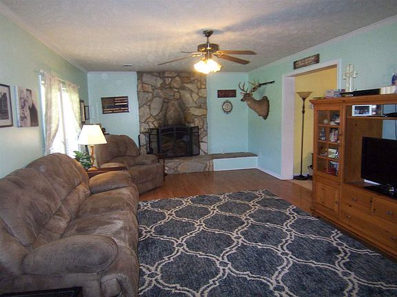 Spacious home located on 2 acres in country setting. The living room has a fireplace. The kitchen has an island with a breakfast bar. The master suite is on the main level. The master bath has a double vanity, a walk-in closet, and a large tile walk-in shower. Rocking chair front porch and large rear deck. The partial basement is unfinished. There is a detached metal double garage, a storage building, and a dog lot.