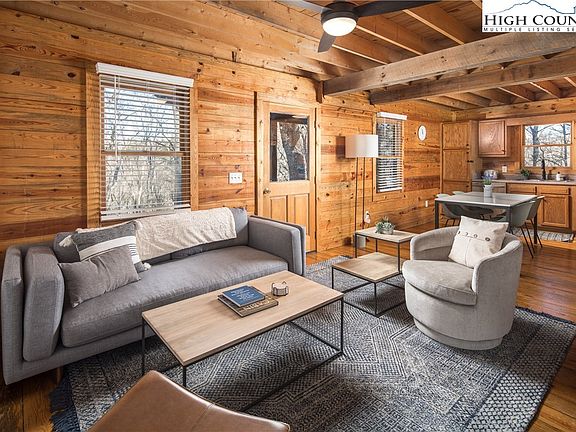 Welcome to this charming two-bedroom two-bathroom cabin, where tranquility and nature embrace you from every corner. Tucked away in the enchanting woods, this cozy retreat offers the perfect escape from the hustle and bustle of everyday life. As you step inside, you'll be greeted by a warm and inviting atmosphere. The open layout seamlessly connects the living area, the dining space, and the well-equipped kitchen, creating a delightful space for relaxation and making memories. The rustic feel and contemporary furnishings add just the right touch of comfort to make you feel at home. Wake up to the gentle sounds of birds chirping and sun rays peeking through the windows, reminding you of the picturesque forest just beyond your doorstep. Step outside and get ready to be captivated by the blissful ambiance that surrounds you. Enjoy the spacious deck and breathe in the fresh mountain air as you sip your morning coffee or evening cocktail. For those seeking adventure, hike through nearby trails, explore hidden gems, or simply soak in the beauty of nature. Minutes to the heart of Boone and all it has to offer including App State, local shops, restaurants and cafes, Booneshine, Brookshire Park & Trail, Rocky Knob Mountain Bike Park and The Greenway Trail to name a few. Ideal for a full time residence, weekend retreat, short or long term vacation rental. This woodland cabin is a true haven, offering a chance to escape the daily grind and reconnect with nature. Come experience the serenity and charm of this magical retreat today. Furnishings negotiable