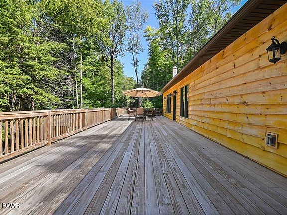 METICULOUS MOUNTAIN CABIN ON 29 ACRES OF PRIVACY WITH TWO OUTBUILDINGS NEAR HONESDALE, PA! Built just 5 years ago, this home offers a modern lifestyle with the charm of an open floor plan design. Be captivated by the spacious floor plan, where the heart of the home lies in the inviting dining & kitchen area. The high ceilings & luxury vinyl flow into the primary bed & 2 full baths. From the spacious living room, step outside onto the deck that spans the entire front of the house offering a perfect spot for gatherings. The unfinished lower level & second level provide potential for customization. You can expand your living space or add additional bedrooms & bathrooms. A completely private setting with access to a pond & a serene mountain setting that's still close to town!, Beds Description: Primary1st, Baths: 1 Bath Level 1, Baths: 1/2 Bath Lev 1, Eating Area: Dining Area, Beds Description: 1Bed1st