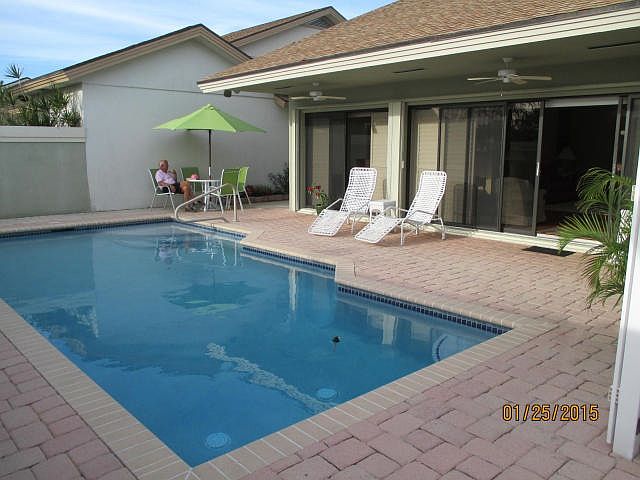 Beautiful updated home in the Ridge. The kitchen and both baths have been updated (tub removed in guest bath), wood floors in all rooms except 3rd BR, which is tiled. Built-in entertainment unit in the guest room used as a den, with a spiral staircase to a slightly extended loft. Great heated pool with pavers surrounding. The pool was resurfaced, and a new chlorinator and filter installed in Nov 2014. Roof replaced in 2007. Hurricane shutters. Plantation shutters in LR, DR, and MBR. Being sold beautifully furnished (with a couple minor exceptions), or unfurnished. Move-in ready to enjoy the season! Nice setting - no homes or utility lines in the back! Total privacy!The advertiser of this listing is acting as a Transaction/Buyers Broker only, not the listing agent. This listing is from RMLS and courtesy of Bluffs Real Estate & Invest.