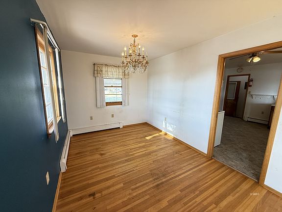 Beautiful setting, Acreage, Potential: This 1-acre property on River Road in Glendive, Montana, offers a rare combination of space, mature landscaping, and opportunity for sweat equity. Surrounded by towering trees, bushes, and an expansive lawn, the setting feels private and peaceful while still being conveniently located. The home features original hardwood floors throughout the living room, dining area, and two main-level bedrooms, with a full bathroom and a spacious kitchen that opens to an enclosed sun room with gas stove for year-round use. The basement includes a family room, laundry area, a bathroom, and three non-conforming rooms that offer flexible space for guests, hobbies, or future improvements. Heating is provided by a natural gas hot water system. Outside, the property includes a detached double garage, an 18' x 12' shed with a garage door, and a 30' x 60' open-faced pole barn built in 2007-ideal for equipment storage, livestock, or large vehicles. With solid bones and valuable outbuildings already in place, this home is perfect for a buyer looking to build equity through updates and personal touches while enjoying the space and tranquility of country living.