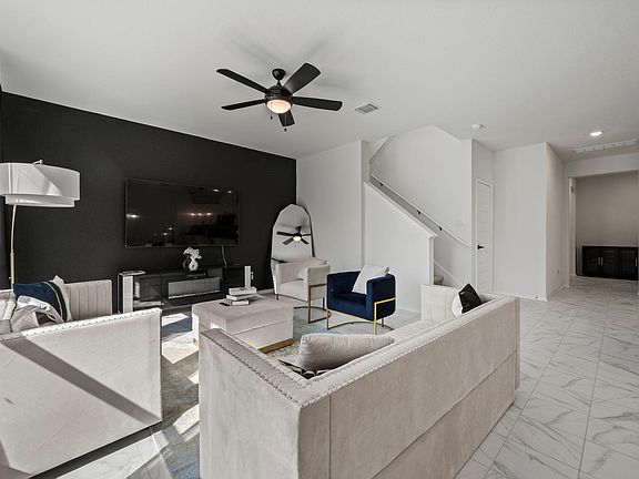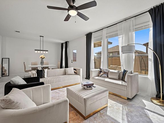 This beautifully designed two-story home offers 4 spacious bedrooms and 3.5 baths, blending comfort and modern style throughout. The main level features a private bedroom with a full bath, ideal for guests or multigenerational living, while the second floor offers three additional bedrooms and two full baths for family and friends. Soaring ceilings and expansive windows fill the open-concept living area with natural light, seamlessly connecting the living room, dining space, and kitchen. The chef-inspired kitchen includes sleek finishes, a breakfast bar, and a pantry, creating both function and style. Tile flooring on the main level ensures durability and easy maintenance, while upgraded lighting and plumbing fixtures add a touch of elegance. Upstairs, a versatile loft game room offers the perfect space for recreation or relaxation. The large laundry/utility room provides convenience and storage. Step outside to a sunny, level backyard with a covered, extended patio featuring a ceiling fan, designed for year-round enjoyment whether hosting friends or simply relaxing. A 2-car garage and water loop installation complete this home’s thoughtful features. Nestled in a quiet, welcoming neighborhood with easy access to shopping, dining, and entertainment, this move-in-ready property offers the perfect balance of modern design, functionality, and everyday comfort. ***Mortgage savings may be available for buyers of this listing. Inquire with listing agent for details.***
