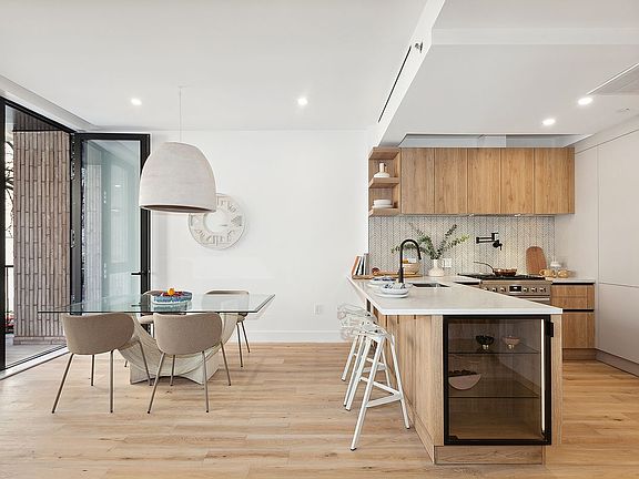 Presenting 232 S 2nd Street - A thoughtfully conceived 4-unit smart-home boutique condominium in Williamsburg's Southside! This modern, luxurious living experience offers conscientious architectural and interior designs in one of Brooklyn's most sought after and vibrant neighborhoods. Apartment 2 is a spacious, expertly considered 2 bedroom, 2 bath home measuring over 1,000 sqft, plus a balcony and additional private storage. This full floor home features a light filled, open living room, large enough for an office space. The light pouring in from the floor to ceiling windows invites you through the space leading to a large dining area that opens onto a large balcony, perfect for your morning coffee and contemplation. The kitchen is a true gem featuring custom imported German Kitchen accentuated by chevron tile back splash and integrated appliances including wine fridge, dishwasher, vented hood and a pot filler above the stove for seamless convenience. The kitchen peninsula creates additional counter space to be your best chef with extra storage space to keep your kitchen organized while entertaining your guests in style. The bathrooms create the serene, spa-like atmosphere highlighting the custom vanities made from light wood, in contrast with the black fixtures to enhance the contemporary aesthetic. These bathrooms provide ample space to get ready for a busy morning or simply luxuriate in personal care in the comfort of home after a long day. The attention to detail extends beyond the kitchen and bathrooms. This condominium showcases wide plank, hardwood white oak floors for quality and durability, quiet built-in, multizone, central A/C and heating, additional storage and vented in-unit washer and dryer hookups for added convenience. Embrace the modern lifestyle with the built in speaker system incorporated throughout the unit featuring built in speakers and video intercom. 232 S 2nd Street is situated in Williamsburg's Southside: a cultural and gastronomical wonderland just blocks from the iconic Williamsburg Bridge and Domino Park. Close to the L, G and J trains as well as the East River Ferry. Don't miss this opportunity and schedule your chance to own a luxurious and thoughtfully designed condominium at 232 S 2nd Street. The complete terms are in the offering plan available from Sponsor. File CD-220256
