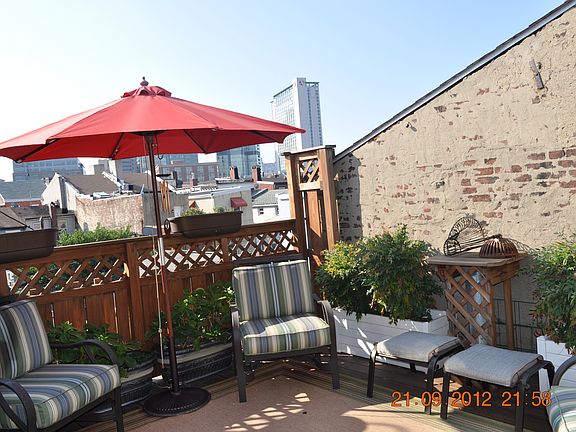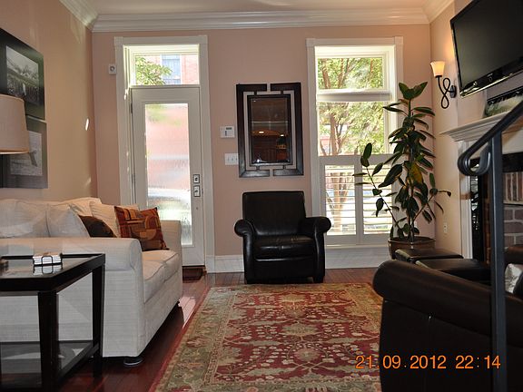 Fully renovated 2 BR, 2 BA plus den. 2-zone central heating/AC system, gas furnace, hot water and cooking. Steam shower in MBA and jacuzzi tub in hall BA. Hardwood floors throughout. Whole house audio system with ceiling speakers, wireless ADT security system, 4 wall mounted flat screen TVs, gas fireplace in living room. Large kitchen w/ granite countertops and SS appliances. Unfinished basement for tons of storage and cedar closet. Must see!