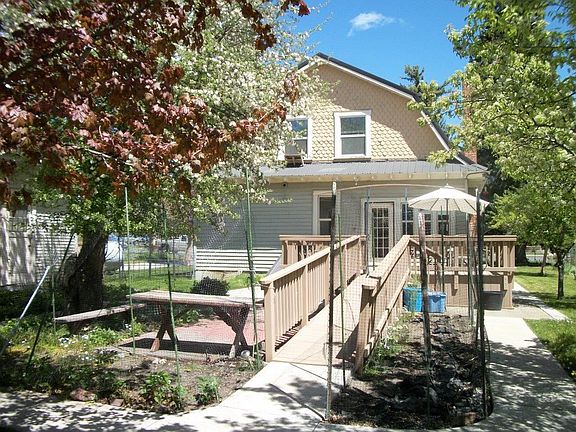 Large house 2436 sq. ft. built in 1908, extensive remodeling, vinyl siding and metal roof, 2 new propane heating forced air units in 2015, in a great neighborhood, 6 bedrooms ,2 downstairs bedrooms, 4 upstairs bedrooms, two bath( 1 ADA assessable), beautiful natural wood flooring, cabinets, trim, built in china hutch, 2 stairways, 2 detached garages with alley access, trex decking, garden area, 11 different fruit trees, partial basement with plenty of storage, underground sprinklers, fenced yard, enclosed front porch, all within walking distance to downtown and schools. A FREE 13 MONTH HOME WARRANTY WITH SALE. A MUST SEE TO APPRECIATE!