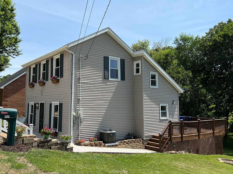 This cute home sits on a double lot in a low traffic neighborhood. It has been completely remodeled to an open plan and a half bath added to the upper level. The plumbing and electric have been updated, the original pine floors are beautifully refinished, and laundry moved from basement to upper level. The entire interior is freshly painted. You’ll love the 31’ x 15’ deck off the kitchen with a lovely wooded view. The furnace was installed 2018, central air & water heater in 2023.