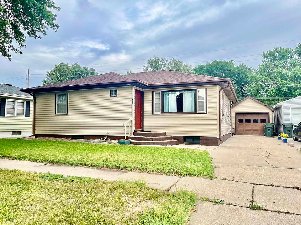 Welcome home to this well maintained ranch style property featuring beautiful hardwood floors in the living room and two spacious bedrooms on the main level. The eat in kitchen comes fully equipped with appliances that stay. Enjoy the natural light streaming into the expansive sunroom perfect for relaxing, entertaining, or enjoying your morning coffee. The full basement offers two additional non-conforming rooms, a family room with a built-in bar area, and a large laundry/storage space. You'll find two bathrooms, one on the main level and one in the basement for added convenience. Step outside onto the newly re-sealed deck, ideal for grilling or soaking up the sun. This property also features a single car detached garage in the front and a two car carport accessible from the alley, providing ample parking options. Major updates include a new roof and central air in 2021, plus a new water heater. Don’t miss out on this move in ready home with flexible space and tons of natural light!