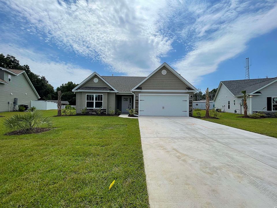 Natural Gas quiet community located in Little River/North Myrtle Beach area only a few miles from the Beach and major shopping! This is the Princess floor plan featuring 3 bedrooms, 2 baths. It includes an insulated, finished (painted and trimmed) two car garage. Ceramic tile in all bathrooms and laundry room, Laminate flooring in Family Room, Foyer, Hall and all bedrooms. Walk in showers and comfort height commodes in Master bath and Guest bath. Granite Kitchen Countertops, crown molding on kitchen cabinets with hardware included. Vaulted ceiling in Family room and every bedroom. Wainscot and 5 1/2 " beaded baseboards for Custom look!! Home also includes TAEXX™ pest control tubing, lawn irrigation and Ring™ video doorbell!!! Stone accents on the exterior as well. *All measurements are approximate*