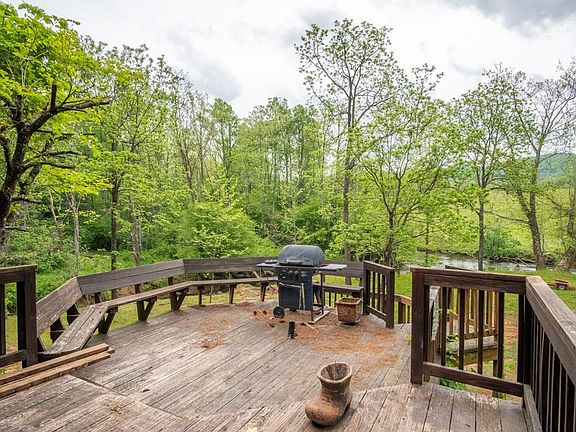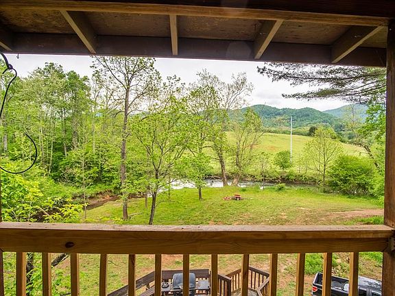 993 FEET ON THE LITTLE TENNESSEE RIVER & CREEK! TROUT CAUGHT HERE! MULTI-MOUNTAIN VIEW! GRADING AND YARD WORK BEING DONE NOW! Private on a river and a creek with pasture and mountain views.This home sits on 3.35 +/- acres on a dead end St., big enough for some animals & garden. The decks and porches are enormous for lots of outdoor entertaining. Three heat sources are available for any weather condition.A third bedroom is on the lower level with private living/game room area,bath and laundry with private porch to enjoy the awesome setting. Cell service and frontier internet is available.