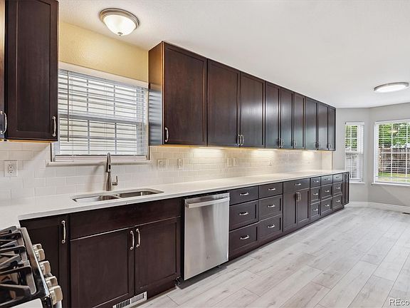 Fully remodeled!!! This 2 story home has so much to offer! Main floor features; newly remodeled - foyer entry way, new flooring throughout, updated kitchen cabinetry, appliances, tile back-splash, counter-tops & under cabinet lighting - offering a breakfast nook, open family room, spacious bright dining room & a powder bathroom for convenience. Upstairs features; new carpet - master bedroom w/ 2 walk-in closets, a 5 piece master bathroom, laundry room w/ ample storage & folding room, a full bathroom & 2 spare bedrooms. Basement features; newly finished w/ a full kitchen, laundry room, a bathroom w/ a beautiful walk-in shower & 2 additional bedrooms. Exterior features; new paint, appealing stone surround, landscaped front & backyard w/ sprinkler systems, a large back patio for entertaining, a 2 car garage - drywalled & heated & an 8X10 resin storage/utility shed. This great community offers a park, picnic shelter, a walking path & a lake with fishing access. 1 mile to I-25.