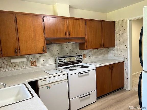 Location!! Location!! Location!!Welcome to this classic 2 bedroom, 2 bath brick ranch style home in Lakewood’s quiet Lakewood Manor neighborhood!! The main floor features a spacious family room and dining room with new carpet and paint. Don’t miss the wood burning fireplace to keep cozy in the winter. The kitchen has new Luxury Vinyl Plank flooring, new lighting, and all the appliances are included. 2 nice sized bedrooms with hardwood floors and a full bath with new LVP flooring complete the main level. The full basement boasts a large family / game area, bar, ¾ bath, utility room, workshop, and storage area! Entertain your friends or just relax after work in your large back yard which is fully fenced and features a massive, covered concrete patio, mature trees, and storage shed! Other special features include a 2-car carport with storage rooms, evaporative cooler, front security door, automatic sprinkler system and updated light fixtures. All kitchen appliances, washer/ dryer, and amazing neighbors are included! Conveniently located near 6th avenue, 1 block from O’Kane Park, 10 mins to downtown Denver, 5 mins to Belmar’s shopping and restaurants & only 15 mins to the famous Rocky Mountains! A home in this area priced under $500K does not come around often and with so much to offer in such an incredible, quiet location, come see this charming Lakewood home today before it’s gone!!