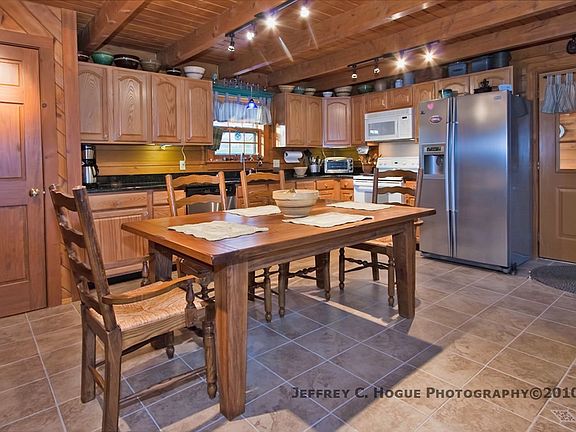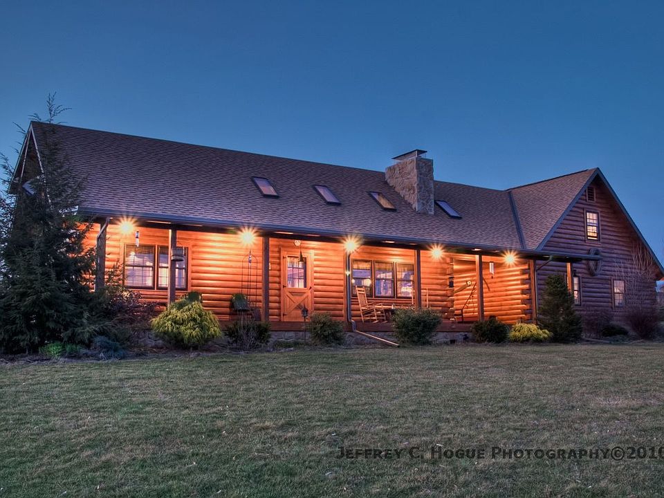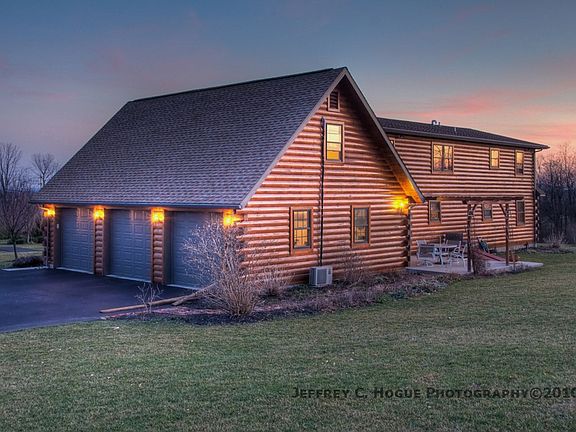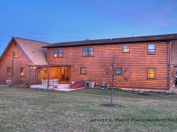 Rustic If you enjoy the natural look and feel of a pine log cabin with all the amenities of a traditional home this may be just what you are looking for. Features include a country style kitchen with oak cabinets, granite tops & tile flooring. Living room with a cathedral ceiling, skylights & stone fireplace. There are two bedrooms with full bath that complete the first floor plan. The second floor has a large loft area that overlooks the living room below. A master suite with large walk-in closet & full bath with a soaking tub & separate shower. There is a craft room off the loft and beyond that is a family room with a cathedral ceiling. There is a wrap-around porch and breezway that leads to a 3-car garage which also has a full bath. Full basement with extra high ceiling. 3.5 Acre home site with tasteful landscaping, storage shed & patio area. This 8 year old home has warmth from the hardwood floors to the pine walls to the open beam ceilings.