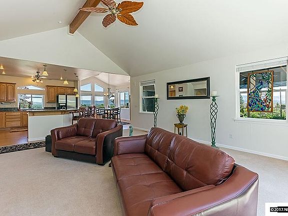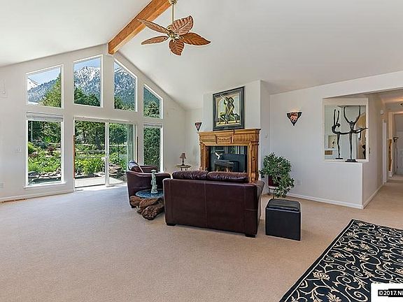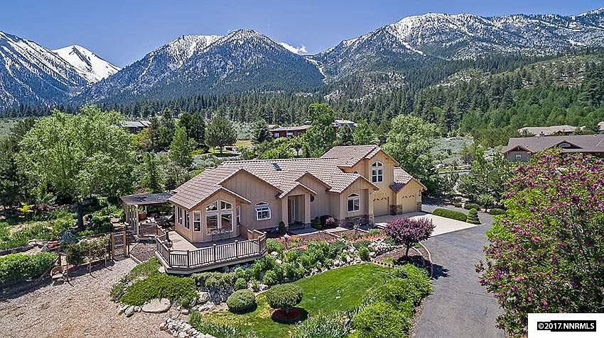 Spectacular ! With majestic Tahoe mountains as a backdrop, this unique, custom-built Sierra mountain home boasts beautiful and impressive terraced gardens surrounding the entire home on this 1.4 acre secluded parcel. Nestled into the Foothills with views of the Sierras behind and the Valley below enjoy your coffee on the decks and BBQ's on the patio. Light and airy interior rooms with high ceilings and an open great-room style living area are ideally suited for easy, comfortable Carson Valley living.
