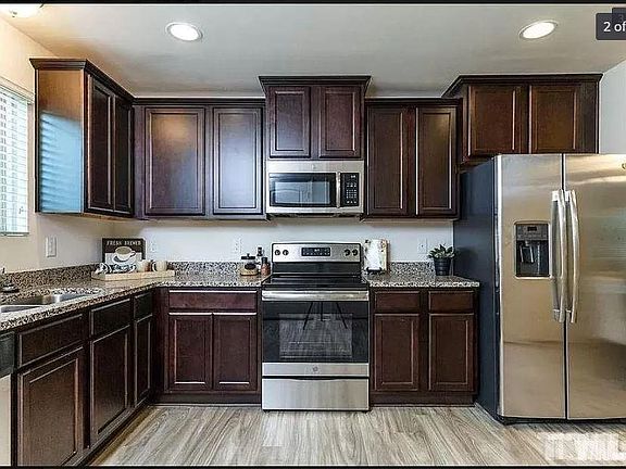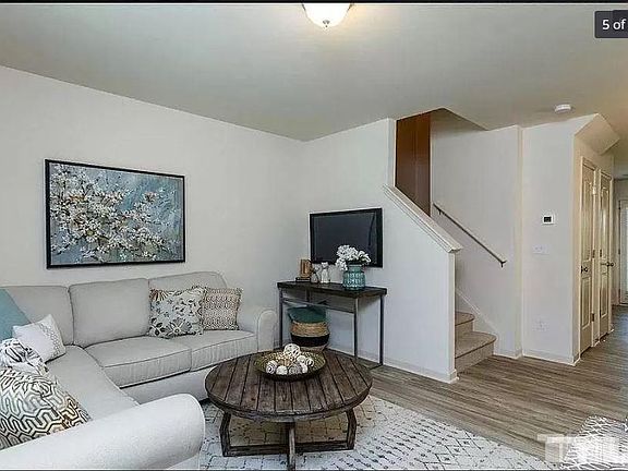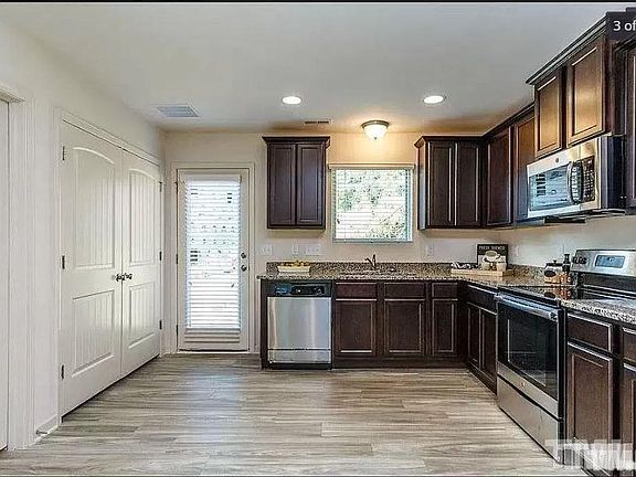 End unit townhome is commuter friendly location on the Cary/ Raleigh border. Granite kitchen countertops with matching stainless steel appliances sitting on the faux wood laminate flooring throughout the first floor. Full baths are tiled with a lovely walk-in shower in the master bath.