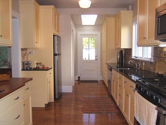 Charming 3 bedroom 1920s Colonial boasts beautiful newer wood floors, and updated baths. Newer kitchen with custom made cabinets, granite cherry counters, and tumbled marble backsplash. Special features include full basement, walk-up attic, fabulous rear deck and rocking chair front porch! Two car garage with heat, attached greenhouse and deep back yard complete this wonderful offering! Garage roof to be replacedShed as is.