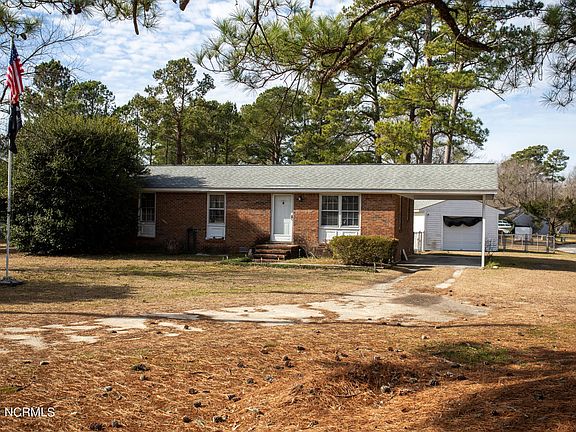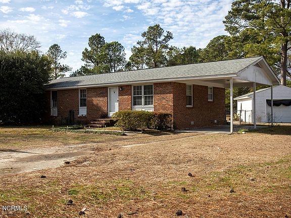 Welcome to your new home! This charming 3-bedroom, 2-bathroom residence is on a generous .51-acre corner lot, just a short stroll away from the local elementary school. A quick drive to Camp Lejeune and MCAS New River and close to shopping. No city taxes. Ideal for those looking to enter the housing market, this property serves as a great starter home with the potential to add your personal touch. The home boasts a fenced yard, providing a secure and private space for outdoor activities. A detached garage and attached carport offer ample parking and storage options. Newly replaced hot water heater, new compressor and compacitor on HVAC. Bathroom sinks and comodes will be replaced in near future. Septic system recently pumped. Crawl space pre-inspection and WDIR scheduled. Newly installed light fixtures. Carpet to be replaced with new carpet and vinyl plank flooring. This house presents a fantastic opportunity for you to customize and transform it into your dream home.