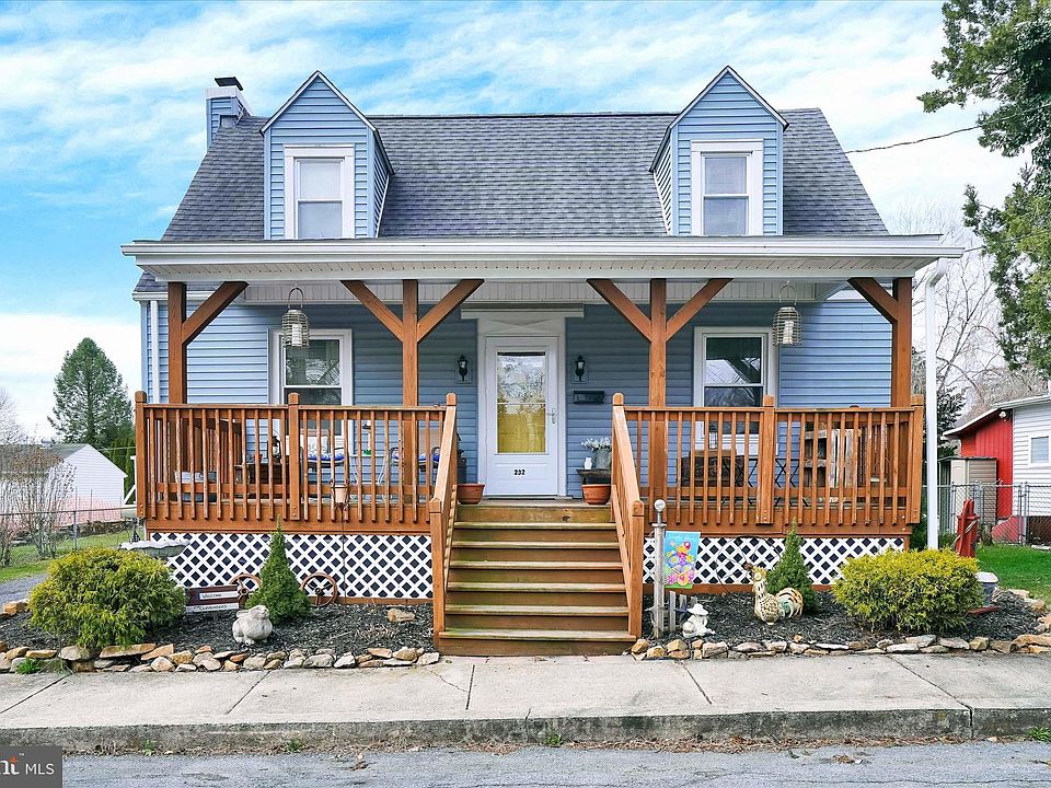Welcome to this charming two bedroom, one bathroom Cape Cod house with modern farmhouse touches and decor located on a double lot in a peaceful neighborhood with a lovely front porch that awaits you and your morning coffee. You will fall in love as soon as you arrive! As you enter the home, you'll be greeted by a large living room with tasteful colors and a pellet stove, perfect for keeping warm on chilly evenings. The large kitchen boasts wood cabinets and plenty of counter space. Enjoy your meals in the adjacent dining area, which provides ample natural light and space for entertaining. There is also a screened in porch/mudroom area off of the kitchen that leads onto the large back deck, perfect for entertaining. The two generous sized bedrooms feature hardwood floors and the bathroom has been updated with modern fixtures and features a bathtub and shower combination. As you make your way to the basement, you'll find an office area that could easily be converted into a third bedroom, providing extra living space for your family or guests. The basement also offers a full bathroom and plenty of storage space, making it ideal for a workshop or additional storage needs. Outside, you'll find a detached, oversized one-car garage perfect for storing your vehicle or using as a workshop space. The double lot provides plenty of space for outdoor activities and entertaining, or even parking and storage. The roof has also been updated within the past 10 years, providing peace of mind for years to come. Located close to shopping, dining, and entertainment, this delightful Cape Cod house is the perfect place to call home. Don't miss your chance to make this home yours!**Highest and Best Offers due by Saturday, April 8th, 2023 at 4:00 PM**