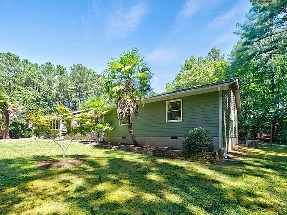 Beauty surrounds you. Over 5 acres in Apex! Make this fully remodeled ranch home yours. Sip a drink at the tiki bar, enjoy the ponds, walk the paths, grow a garden. Fresh paint, new floors throughout. Open floor plan with beautiful views. Detached workshop, detached planting/craft studio, detached screened porch. All the comforts of country living while still being a short drive to RTP, Jordan Lake and everything the Triangle area has to offer.
