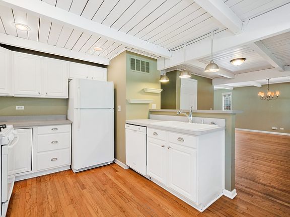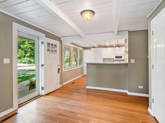 Affordable stylish living in Barrington Village.....This pristine jewel box offers a living room/dining room, beautiful white kitchen, 2 bedrooms and 1 bath. Architectural details throughout - shiplap ceilings with beams, vintage tile in bath, newer windows. Attached 1 car garage and a wonderful large backyard with a shed for extra storage. Close proximity to train, restaurants and shopping in downtown Barrington but also has easy access to expressway. Don't miss seeing this one!