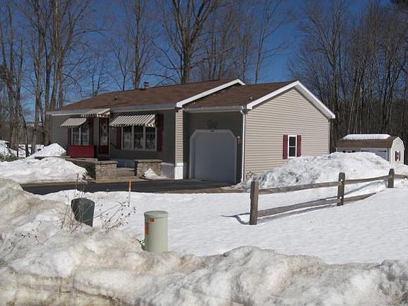 Stunning and cheerful 2 bedroom home, well appointed with many upgrades. Attached one car garage w/electric opener. Handsome hardwood floors, ceramic tile in bath w/granite counter top. Spacious living room, eat-in kitchen, fully appliance, Island, granite counters, ample cabinets & additional tall cabinet. Lovely 10X12 enclosed porch off kitchen that leads to 10X10 back deck and 8X12 shed. Central air, buried propane tank, generator hard wired & works automatically. Tasteful décor and in immaculate condition. The grounds are well landscaped. Awnings are on front of home. Convenient to Contoocook Village, I-89 and home is in popular Elm Brook Co-op Park. Shows pride of ownership through-out. Ease of living at its best!