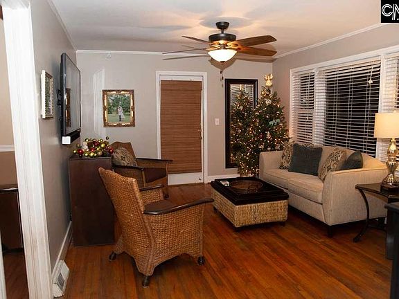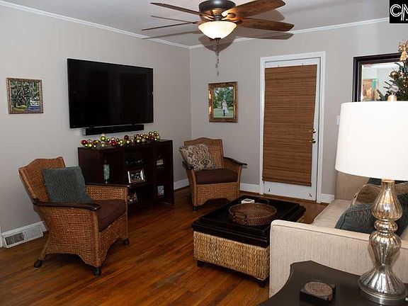 This all brick home in the established Forest Acres Neighborhood is zoned for the renowned Satchel Ford Elementary School, Crayton Middle School, and A. C. Flora High School. Gleaming hardwood floors throughout. Beautiful chair railing in the dining room. Remodeled bathroom features bonus built in shelving and a pedestal sink. This home is perfectly set up for entertaining with ample parking, a back deck and a spacious backyard! The HVAC was replaced in 2018 and there is a Rinnai tankless water heater for added comfort. Don't forget the back yard also has a privacy fence and a sizable 10x12 storage shed with a 10x12 lean-to attached.