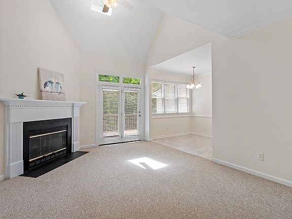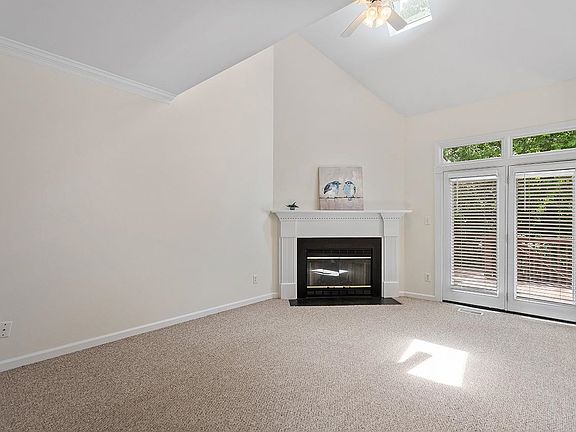 Freshly painted 2 bedroom, 2 bath townhome in prime Cary location! Enjoy abundant natural light in this 1487 sq ft home featuring a wood burning fireplace, vaulted ceilings, and 2-inch blinds throughout. French doors open to a spacious deck (with an outside storage room) that overlooks a wooded area, perfect for entertaining. The kitchen features white cabinets and a sizable breakfast nook. One bedroom is located downstairs with direct access to a full bathroom. Upstairs, discover a versatile loft and a large primary bedroom with two closets (one walk-in closet) and an ensuite bath. This sought-after, centrally located community offers a pool with the HOA dues. Exterior repainted in 2021, roof replaced in 2018, and new HVAC installed in September 2022. Interior repainted May 2023. No rental restrictions. Highly ranked Wake County schools.