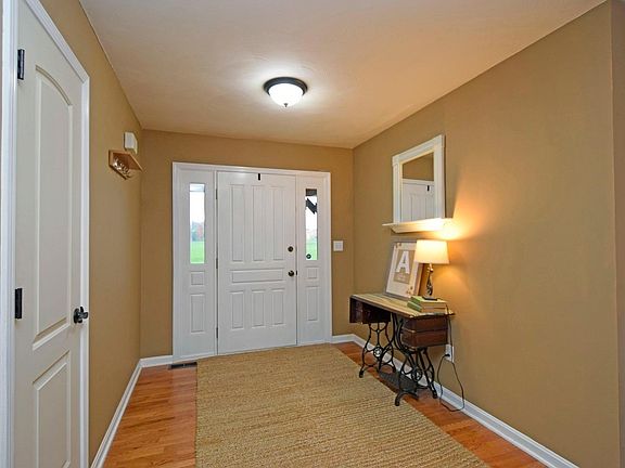 Great open concept ranch. Convenient location, but set back from road with 5 level acres and wooded rear for privacy. Newer roof, newer water filtration system, beautiful hardwood floors. Attached 2 car garage, mudroom, covered front porch and large rear deck. 24x30 barn. This terrific property won't last!