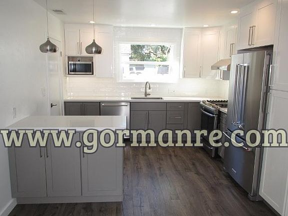 Gorgeously remodeled 2 bedroom, 1.5 bathroom home in a great neighborhood close to Washington Park. This charming home has approximately 1,080 square feet of living area and is surrounded by a beautiful garden. The living room is spacious and features brand-new vinyl laminate wood-style flooring. This beautiful flooring is very attractive and practical for today s lifestyle, and it is featured in the kitchen and both bedrooms also. The kitchen is gorgeous, including handsome new cabinetry, quartz counters, and a breakfast bar. The new stainless steel appliances include a refrigerator, self-cleaning gas range/oven, a dishwasher, a free-standing microwave in a cabinet cubby, and a disposal. The front bedroom is spacious and includes a half bathroom and ample closet space. The rear bedroom is also spacious and comfortable. The bathroom is located between the two bedrooms and has also been remodeled; it includes a custom tile shower stall and an attractive vanity. The home has central heating. There is a one-car attached garage with an automatic door opener, and is directly accessed from the laundry room. The laundry room has hookups for a washer and a gas dryer. Rent includes basic gardening and sewer. No smoke/pets. Available immediately.