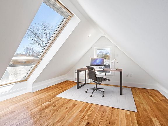 Sun filled third story penthouse unit with skylights galore!! This stunning and unique fully renovated apartment has 2 bedroom with 2 full marble bathrooms and incredible lofted office space. The large open concept kitchen opens up to an expansive airy living room with soaring 18 foot ceilings. Beautiful hand crafted stairs lead to the lofted office space with reading nook and state of the art expandable skylight porch. Kitchen features granite countertops, stainless steel appliances, and bar. Two large bedrooms including a master with ensuite bathroom. The two gleaming bathrooms have been beautifully tiled with sandona marble throughout. Skylights in every room. Apartment comes with in unit laundry, central AC, shared backyard for grilling. Covered parking available for an additional charge. Available June1. First, last, and broker fee are due on signing.