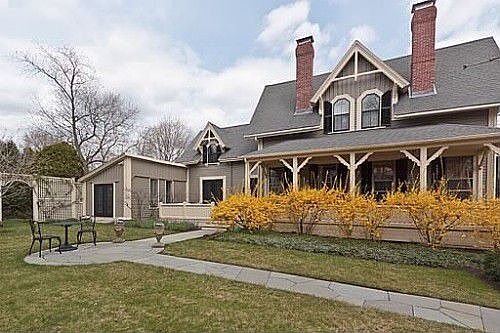 A landmark Belmont property,the Charles King House, is an outstanding example of the Gothic Revival Style which also shows early Stick Style.The wide porch on the side overlooks a stone patio surrounded by lush landscaped grounds.This residence has been tastefully and carefully restored. The chef's kitchen is equipped with Viking and Bosch appliances, custom cabinets and hewn granite and wood counters. Marble fireplaces, 11 ft ceilings and numerous other architectural features complete this home