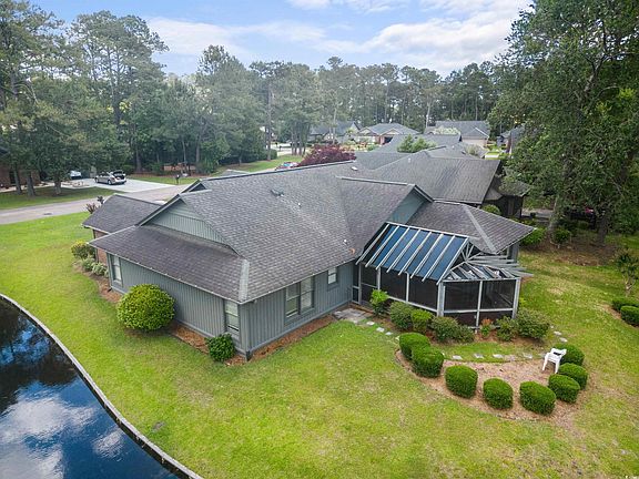 Great view of golf course! Relax on your covered screened in deck and watch the golfers hit over a pond on the golf course and make long putts on the large green. This large 3 BR, 2 Bath home has spacious rooms and a 2 car garage.  Home is being sold "As Is". Myrtle Trace is an active 55+ community with a clubhouse, resident pool and bocce ball court.  One mile from a hospital, shopping, services plus dining opportunities.