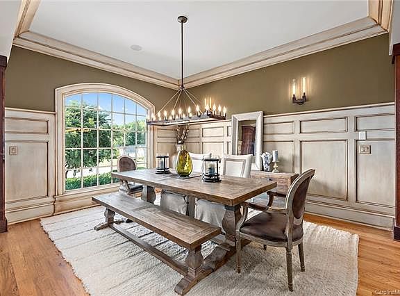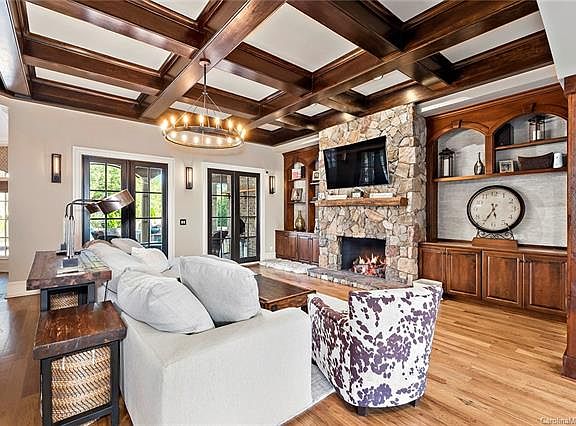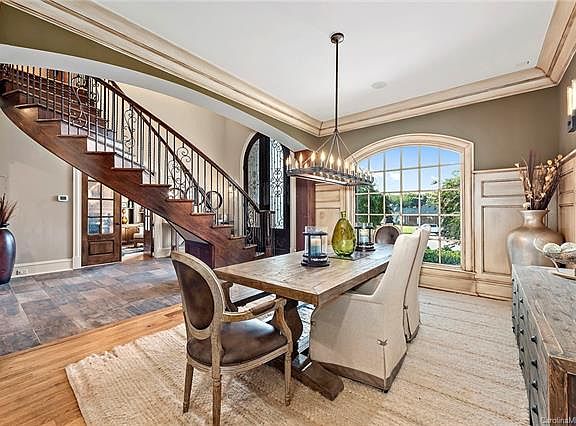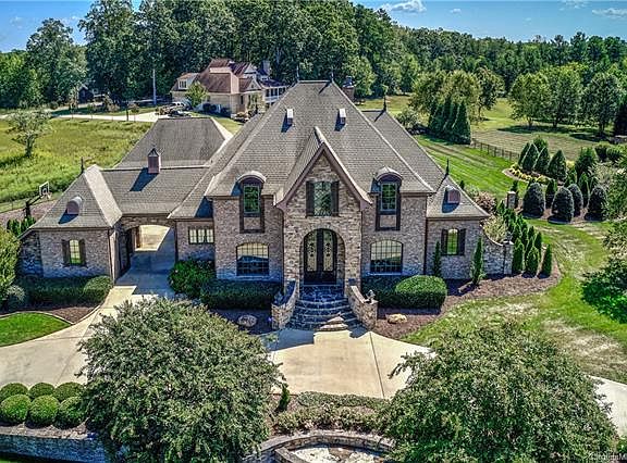Exceptional Estate minutes to 85 and short drive to Charlotte, and Lake Norman. From the moment of arrival, this home exudes an ambiance of inspired beauty. A circular driveway leads to a gated entrance that opens and sweeps through an impressive detached garage courtyard area. Inside, a grand entrance introduces the home, which boasts ultra-luxe style & sophisticated design finished with a floating staircase, Oak stained wood floors mixed with designer tile. Impeccable details include numerous fireplaces, crown moldings, Floor to ceiling windows, and dazzling lighting. The transitional two-story open floor plan comprises a library, Master suite and en suite on the main level, also a guest suite with en suite plus 2 bedrooms upstairs, including private en-suite baths. Adding the finishing touch is the level lot of just under an acre with sparkling pool, spa & covered Lanai along with vast stretches of lawn and landscaping all in a very private setting.